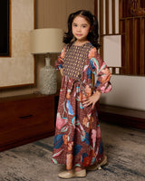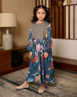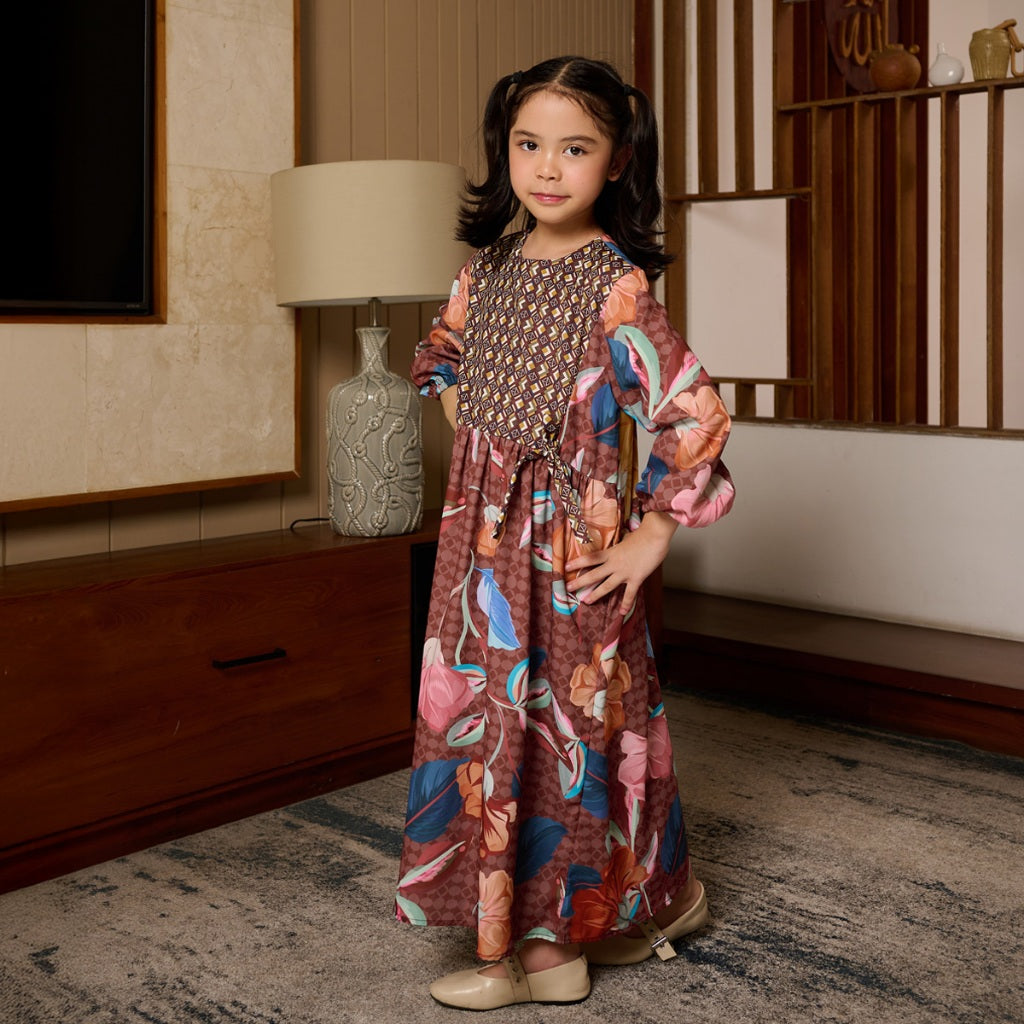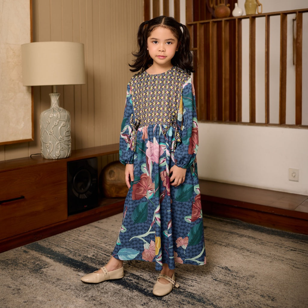 Dress anak dengan perpaduan motif monogram dan bunga yang menghadirkan tampilan anggun, manis, dan menggemaskan. Detail pita di bagian depan menambah kesan feminin yang membuat si kecil tampil semakin cute dan penuh pesona.