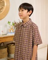 Kemeja anak dengan motif monogram elegan, dilengkapi lapisan furing bagian dalam untuk memberikan kenyamanan ekstra dan tampilan yang lebih rapi. Terbuat dari bahan sofy flow yang lembut, ringan, dan tidak menerawang, membuatnya nyaman digunakan sepanjang hari.