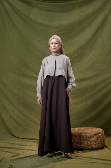 Detail bordir di sisi dress memberikan sentuhan unik dan berkarakter, sementara detai cuttingan layer menambahkan look akhir yang lebih stylish tanpa perlu mix and match dengan luaran lainnya. Kombinasi ini sangat cocok untuk berbagai acara, mulai dari aktivitas sehari-hari hingga acara informal.