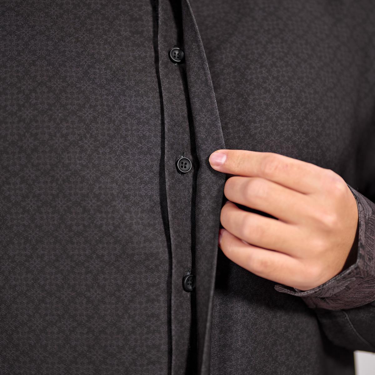 Desain kerah shanghai memberikan sentuhan elegan dan sopan, dipadukan dengan hidden button yang tersembunyi untuk tampilan minimal, bersih, dan eksklusif. Model lengan panjang membuat kemeja ini ideal dikenakan dalam berbagai suasana, baik formal maupun semi formal.
