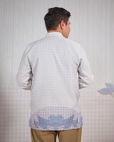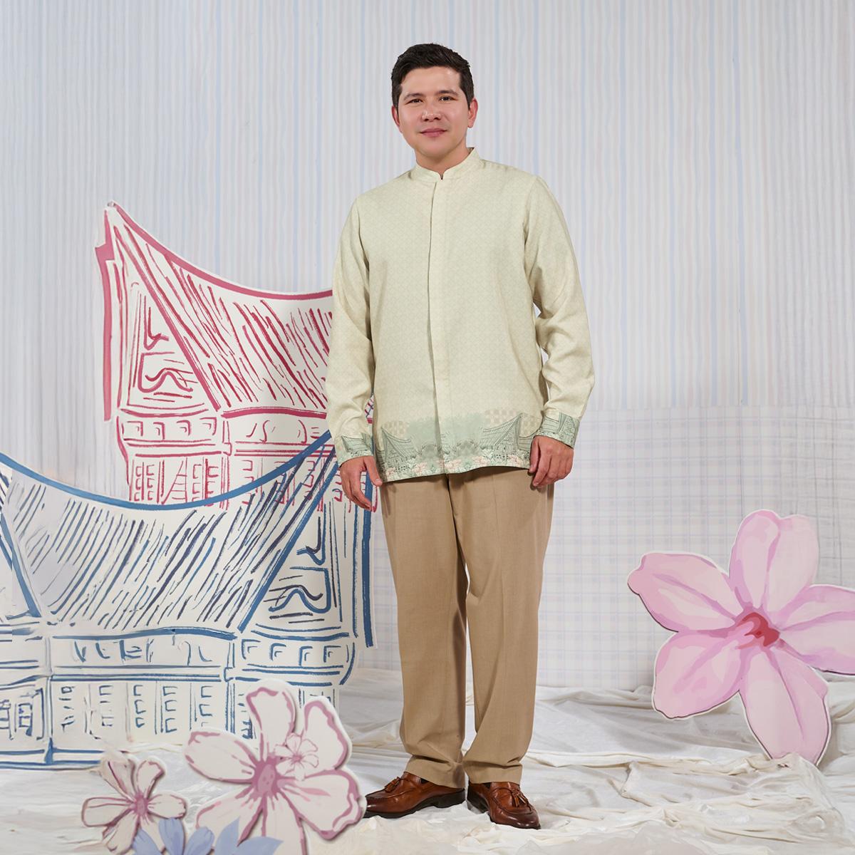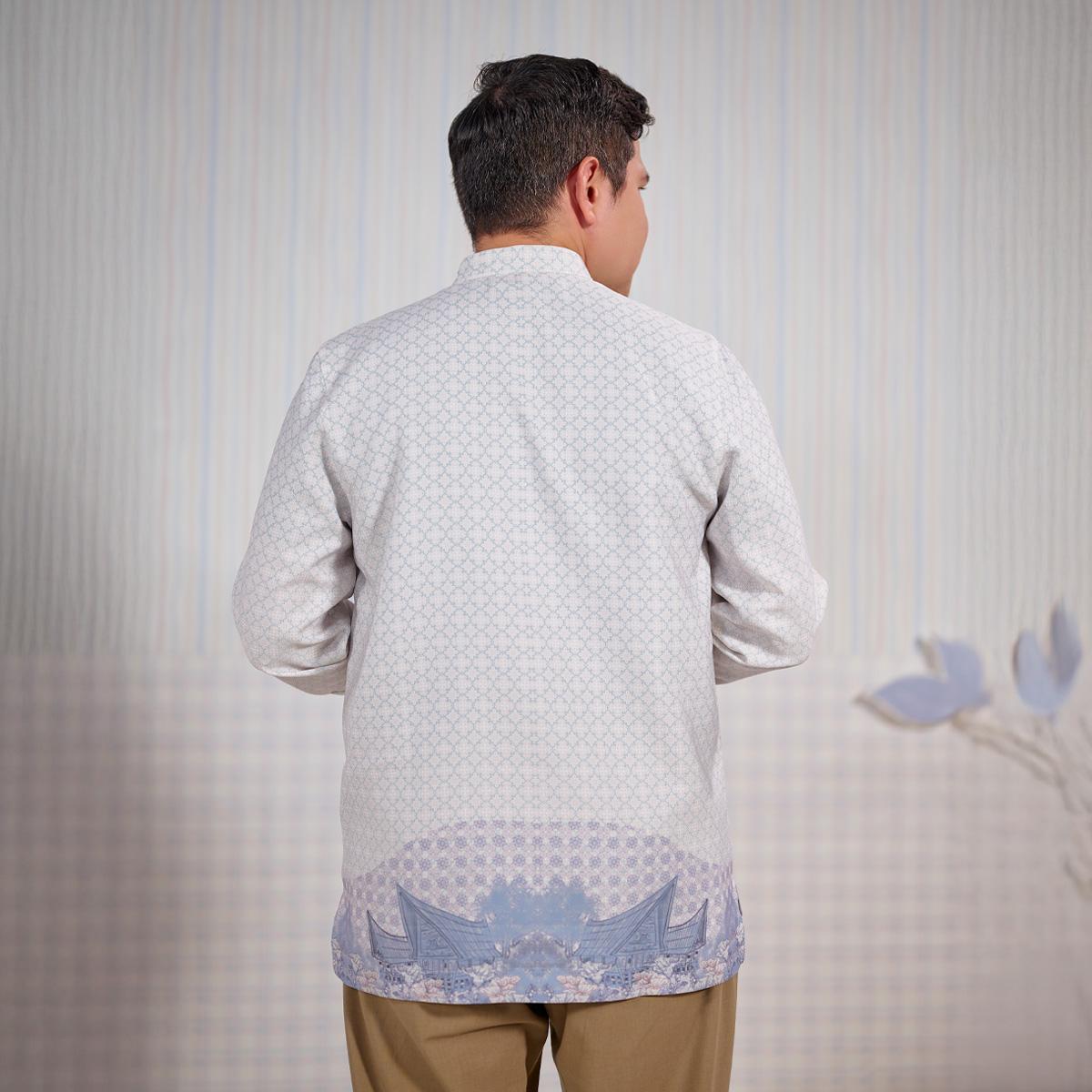 Kemeja koko lengan panjang ini menghadirkan perpaduan antara nilai budaya dan desain modern yang clean. Mengusung motif print Rumah Adat Batak Toba, tampilannya dikemas secara simple dan rapi sehingga tetap terlihat berkarakter tanpa kesan berlebihan.