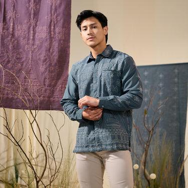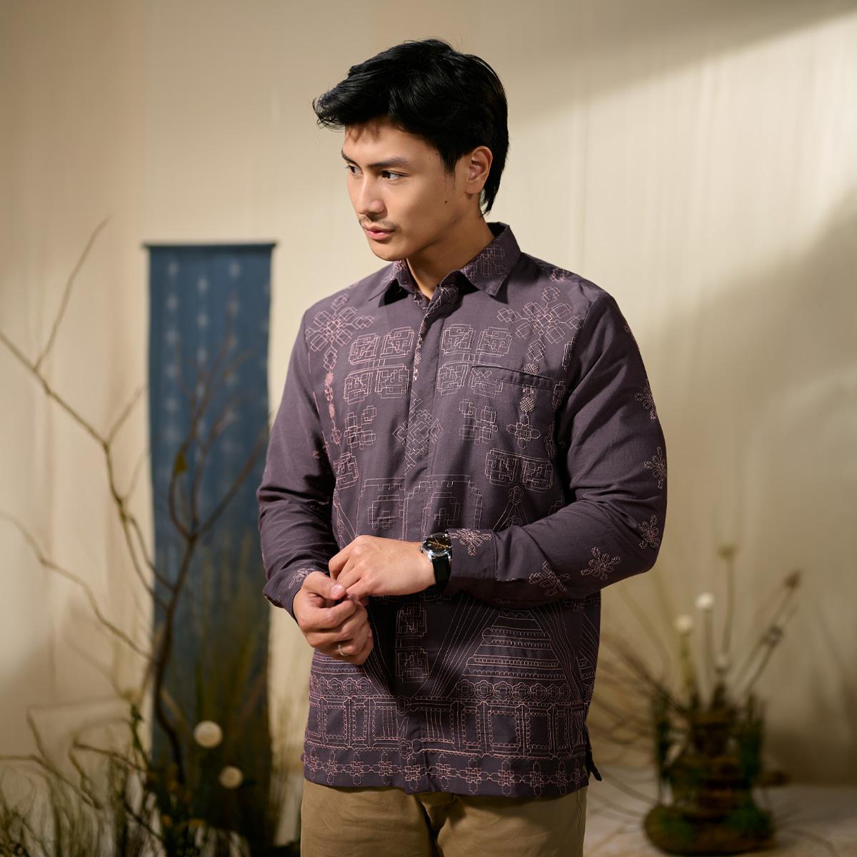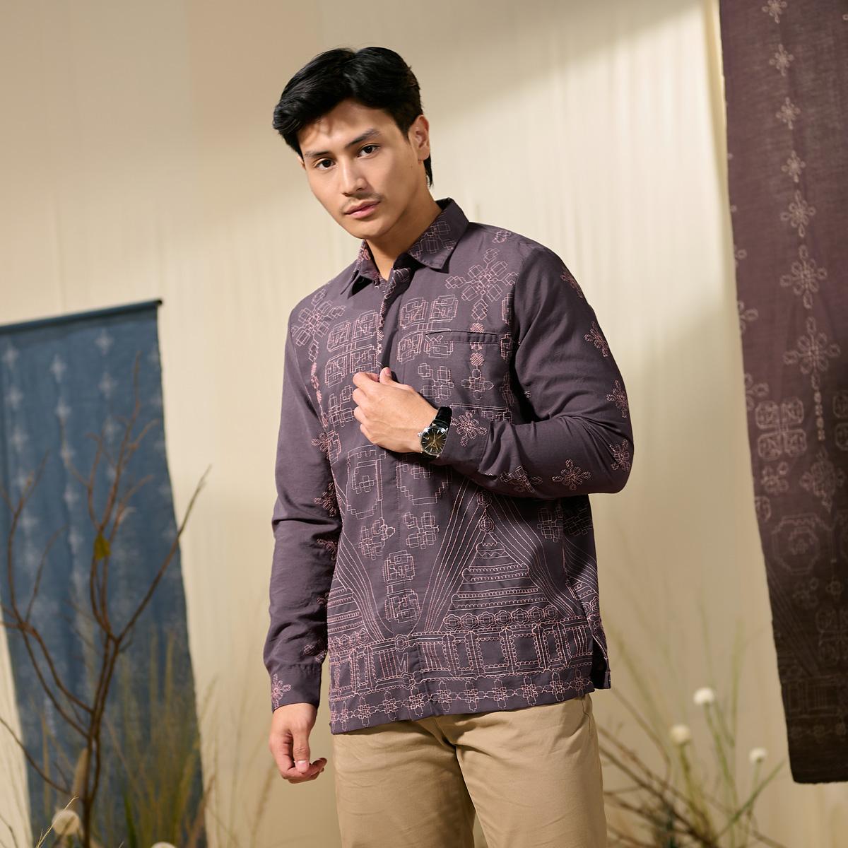 Kemeja pria lengan panjang ini menghadirkan perpaduan desain klasik, sentuhan modern, dan nilai budaya Nusantara dalam satu busana yang berkelas. Menggunakan model kerah kemeja dengan lengan panjang bermanset, kemeja ini memberikan tampilan yang rapi, formal, dan elegan, cocok untuk pria yang mengutamakan detail dan karakter dalam berbusana.