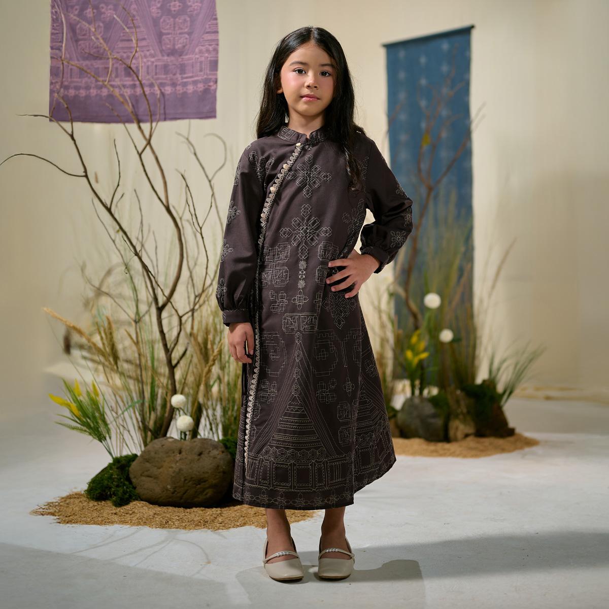 Dress anak hadir dengan desain yang manis dan sopan, dilengkapi detail bordir yang senada dengan busana ibu. Bahan cotton embroidery yang halus dan ringan aman di kulit anak, memberikan kenyamanan sekaligus tampilan anggun di hari spesial.
