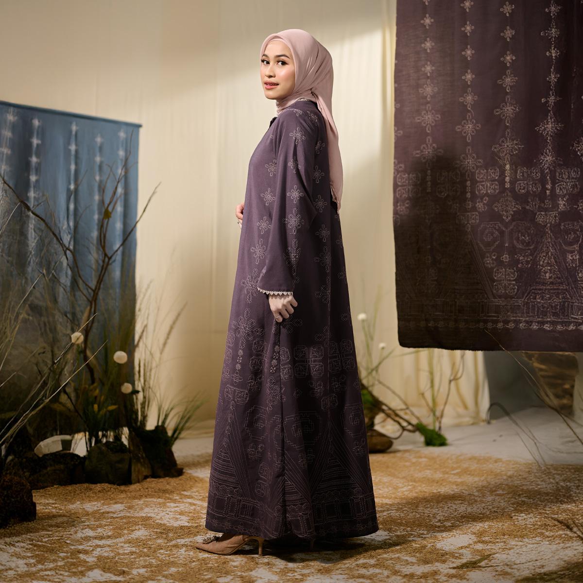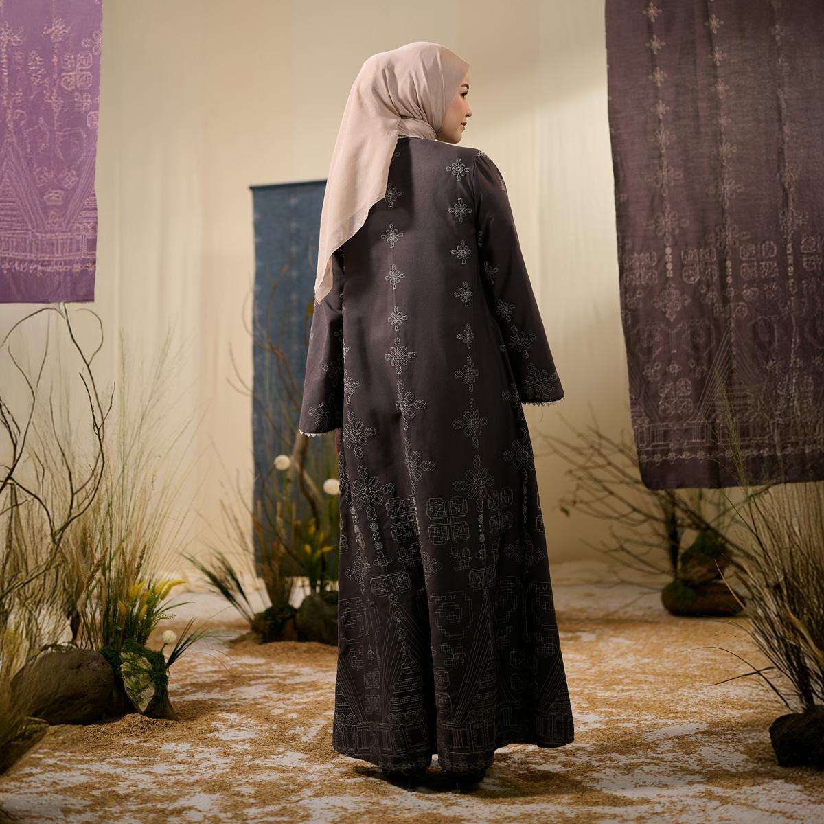 Dress wanita hadir dengan siluet anggun dan feminin, menonjolkan detail bordir etnik pada kain cotton embroidery yang lembut dan adem. Potongan yang flowy memberikan kenyamanan sepanjang hari, sementara detail desain yang rapi menciptakan tampilan elegan untuk momen silaturahmi dan perayaan Hari Raya.