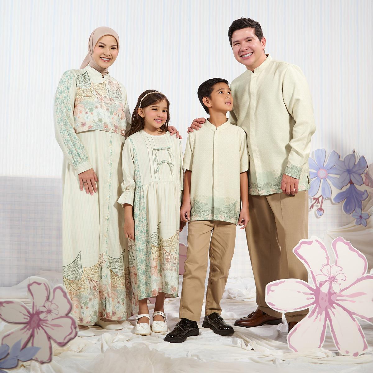 [Raya Collection] ZM Zaskia Mecca - Sarimbit Family Set 2 - Jejak Teduh Huta | Dress Wanita | Kemeja Koko Pria Anak