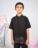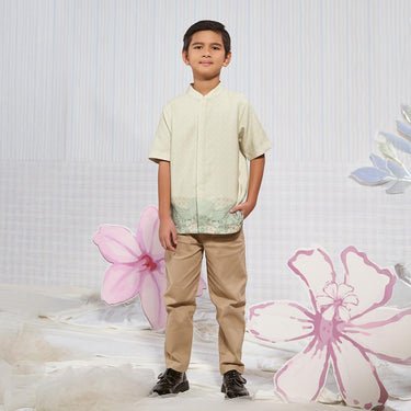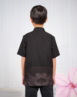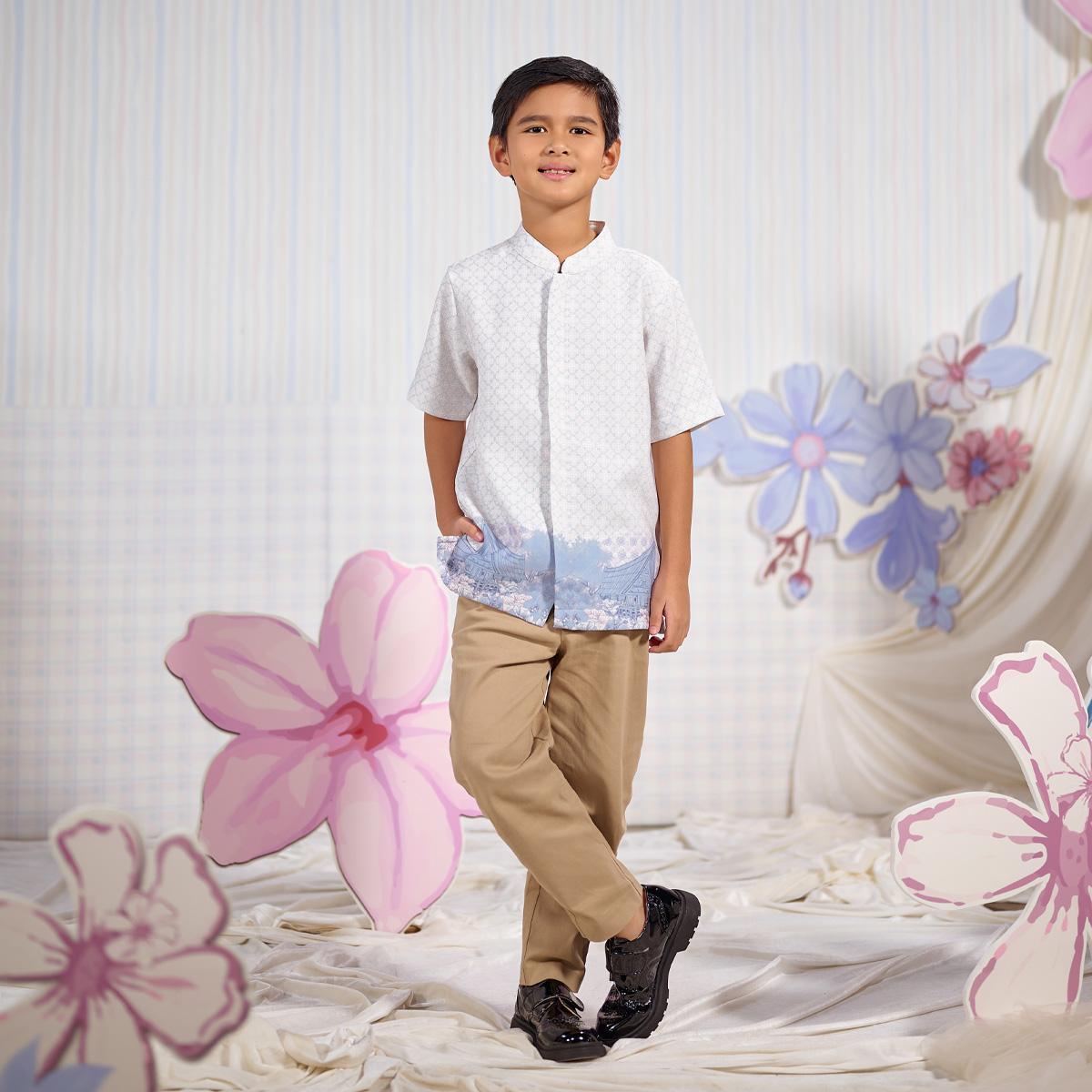 Kemeja koko anak hadir dengan motif print Rumah Adat Batak Toba yang dikemas secara simple dan modern, memberikan tampilan rapi tanpa kesan berlebihan. Dilengkapi kerah shanghai yang bersih dan elegan serta hidden button untuk tampilan yang minimal dan kekinian.