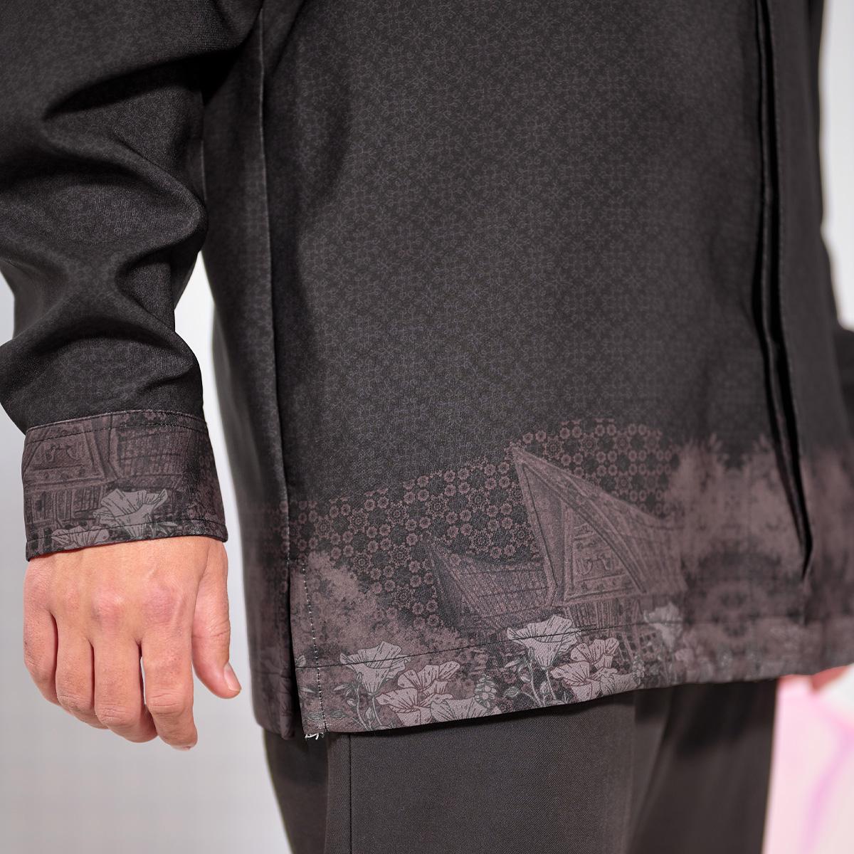 Kemeja koko pria lengan panjang ini hadir dengan motif print Rumah Adat Batak Toba yang dikemas secara modern dan simple, memberikan tampilan rapi, bersih, namun tetap berkarakter. Dilengkapi kerah shanghai yang elegan serta hidden button untuk kesan minimal dan eksklusif.
