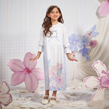 S (3–5 th)Lingkar Dada: 76 cmLingkar Leher: 36 cmKerung Lengan: 36 cmPanjang Lengan: 35 cmPanjang Dress: 85 cmLebar Bahu: 30 cmLingkar Karet Tangan: 14 cm