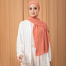 Pashmina instan include iner dengan detail plisket dan jahit tepi