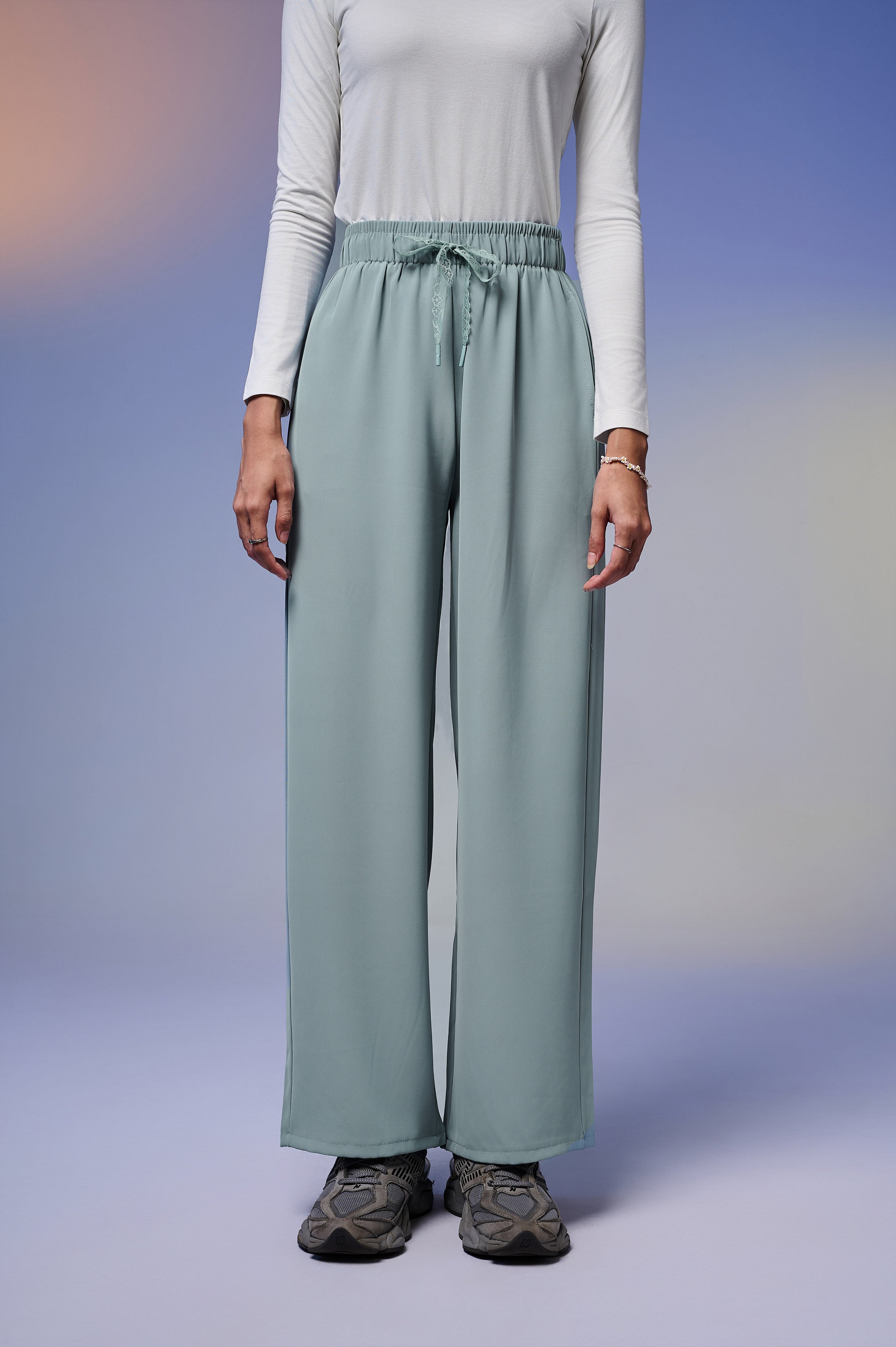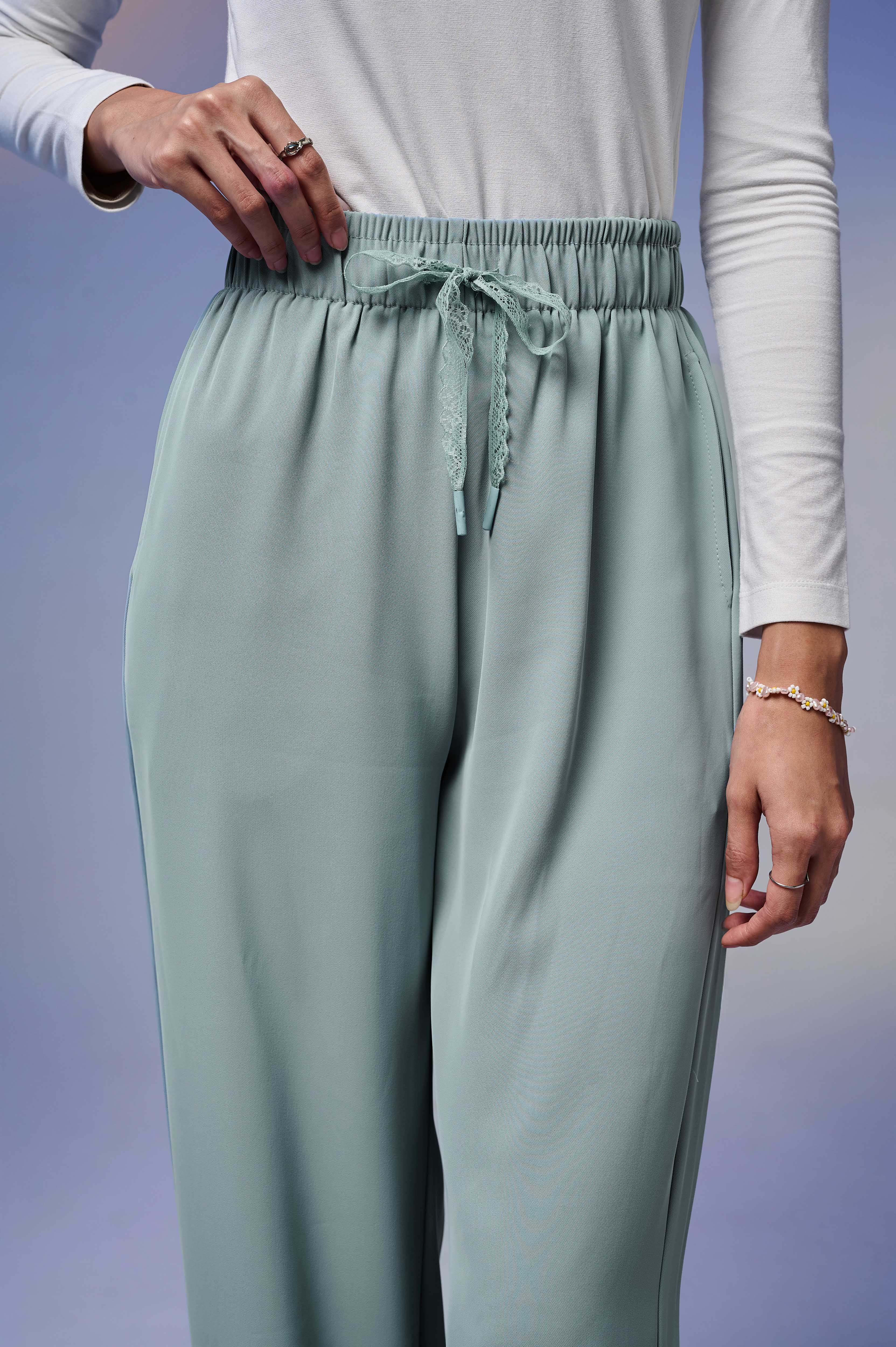 Celana casual ini hadir dengan desain pinggang karet elastis yang dilengkapi tali renda, memberikan kenyamanan sekaligus sentuhan stylish pada tampilan Anda. Terbuat dari material premium Flowfusion yang lembut, ringan, dan tidak mudah kusut, membuat celana ini nyaman dipakai sepanjang hari.