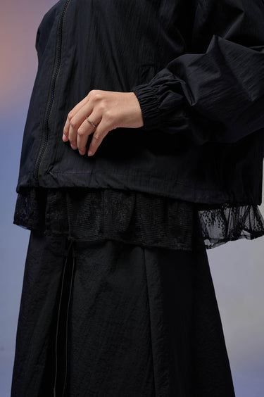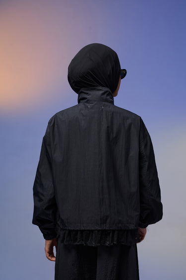 Jaket parasut ini hadir dengan desain stylish dan fungsional, dibuat dari bahan parasut ringan yang nyaman, tahan air, serta mudah dibersihkan. Bagian dalam dilengkapi furing lace lembut yang memberikan sentuhan elegan sekaligus kenyamanan ekstra saat digunakan. Detail lace pada bagian bawah jaket menambahkan kesan feminin yang anggun.