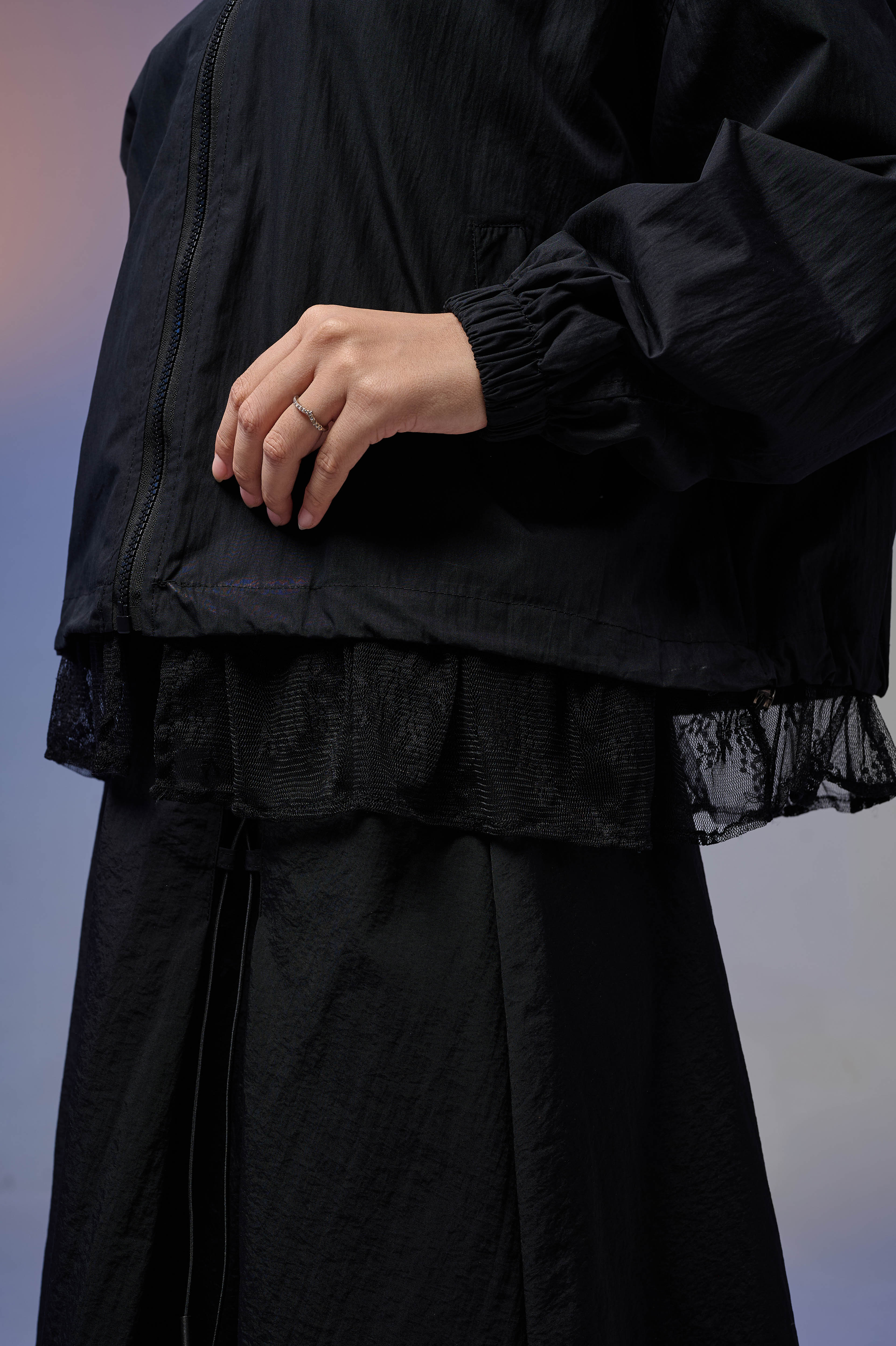 ✅ Detail lace elegan di bagian dalam & bawah jaket, menambah sentuhan feminin yang anggun.