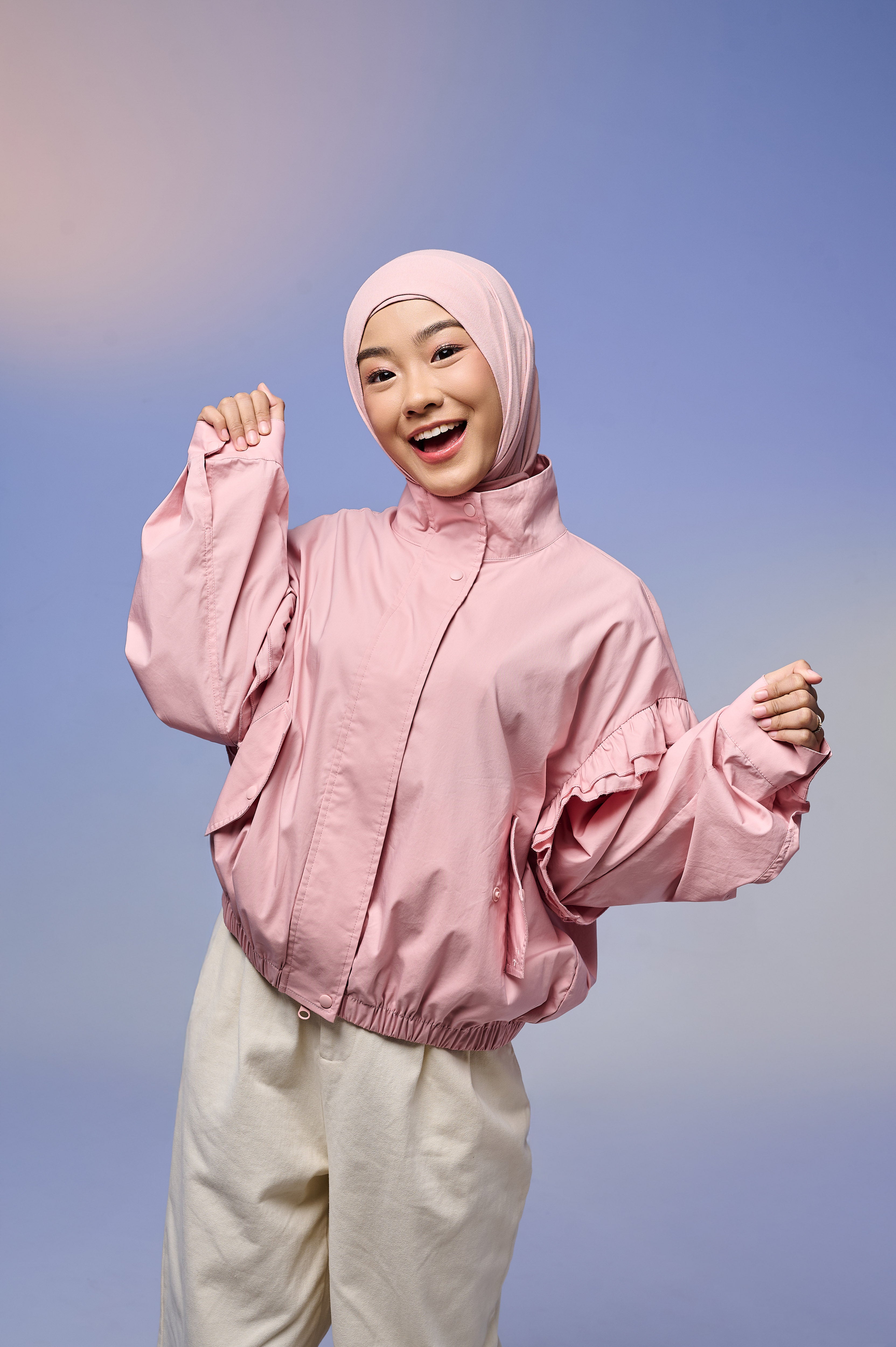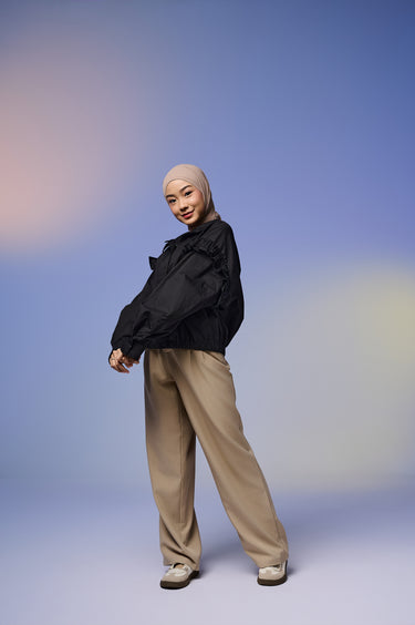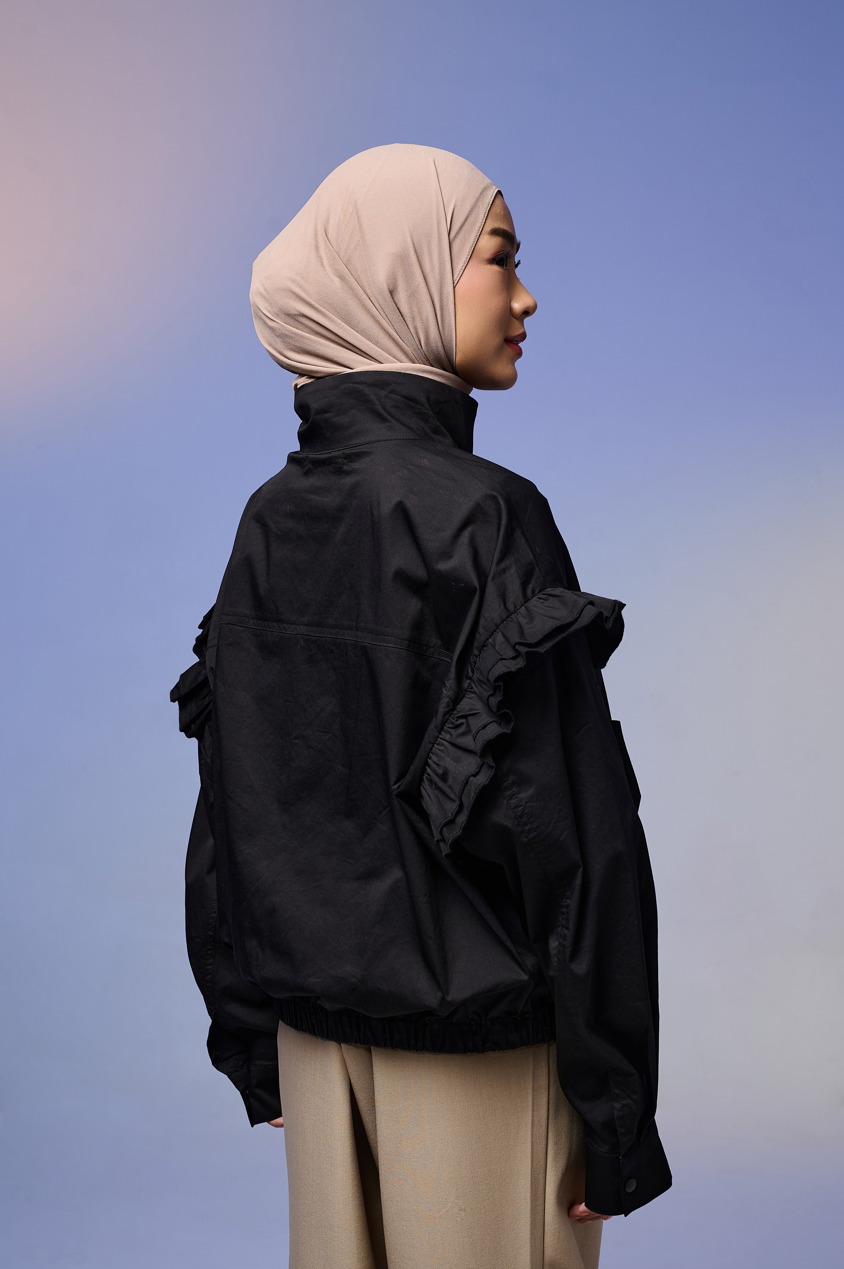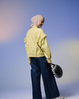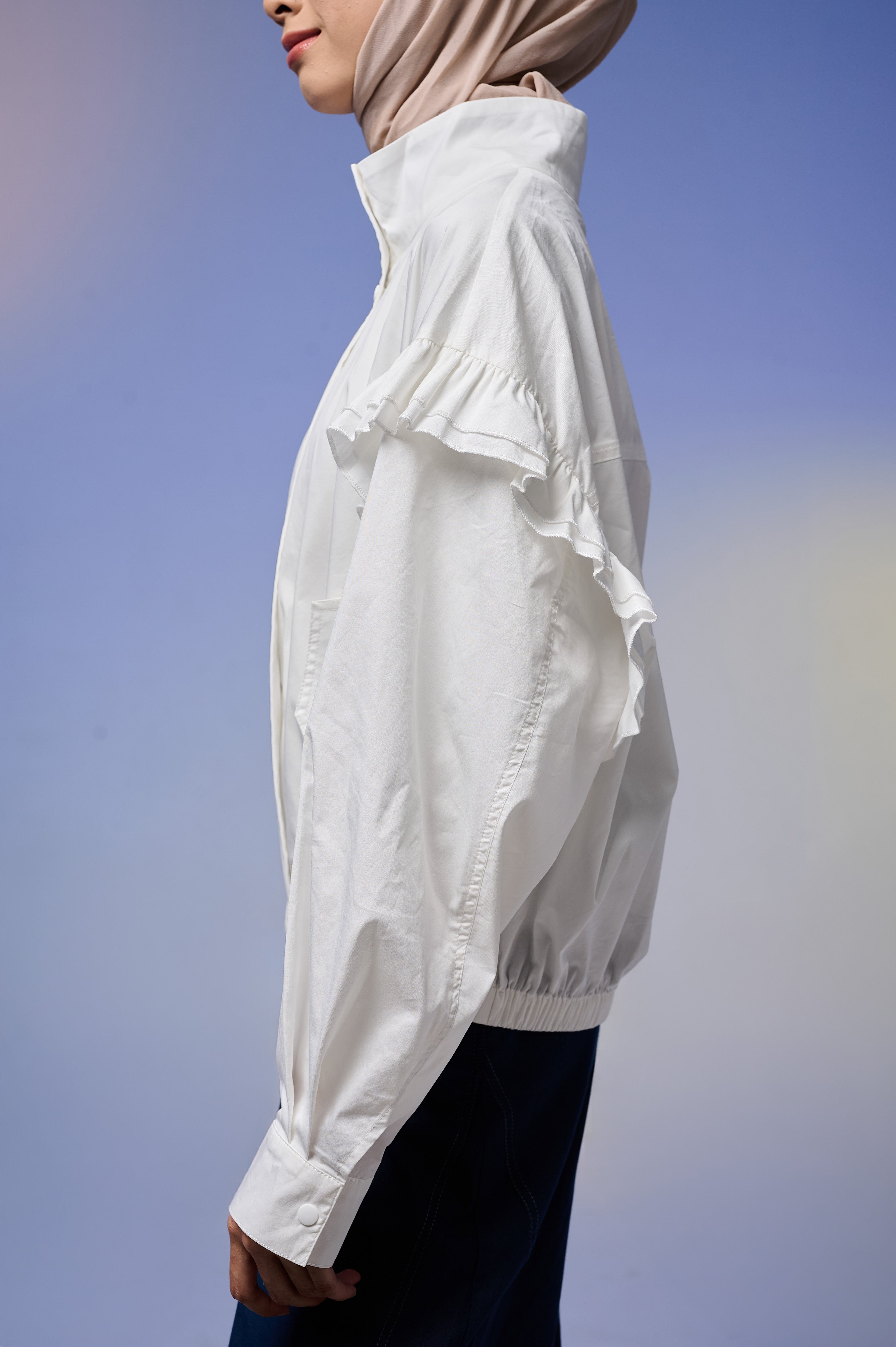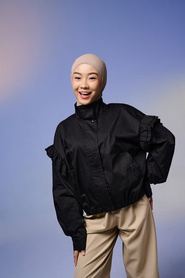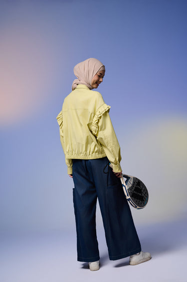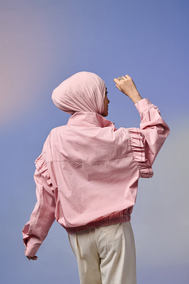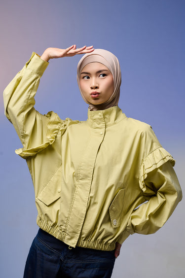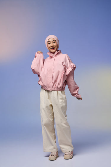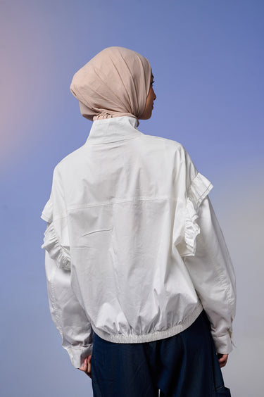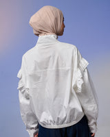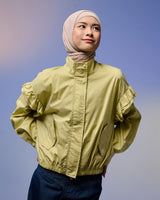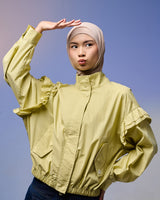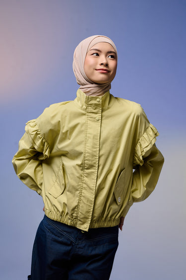Jaket wanita dengan desain feminin & stylish, terbuat dari Twill berkualitas tinggi yang lembut, ringan, dan adem dipakai seharian. Dilengkapi detail ruffle di bagian lengan yang menambah kesan anggun namun tetap kasual.