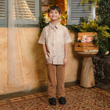 Kemeja ayah dan anak dirancang dengan motif simple yang clean, menggunakan bahan poly structured bertekstur garis halus yang ringan, nyaman, dan tidak mudah kusut. Potongan rapi dengan kerah kemeja dan kancing depan menciptakan tampilan santai namun tetap sopan.