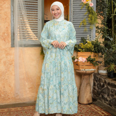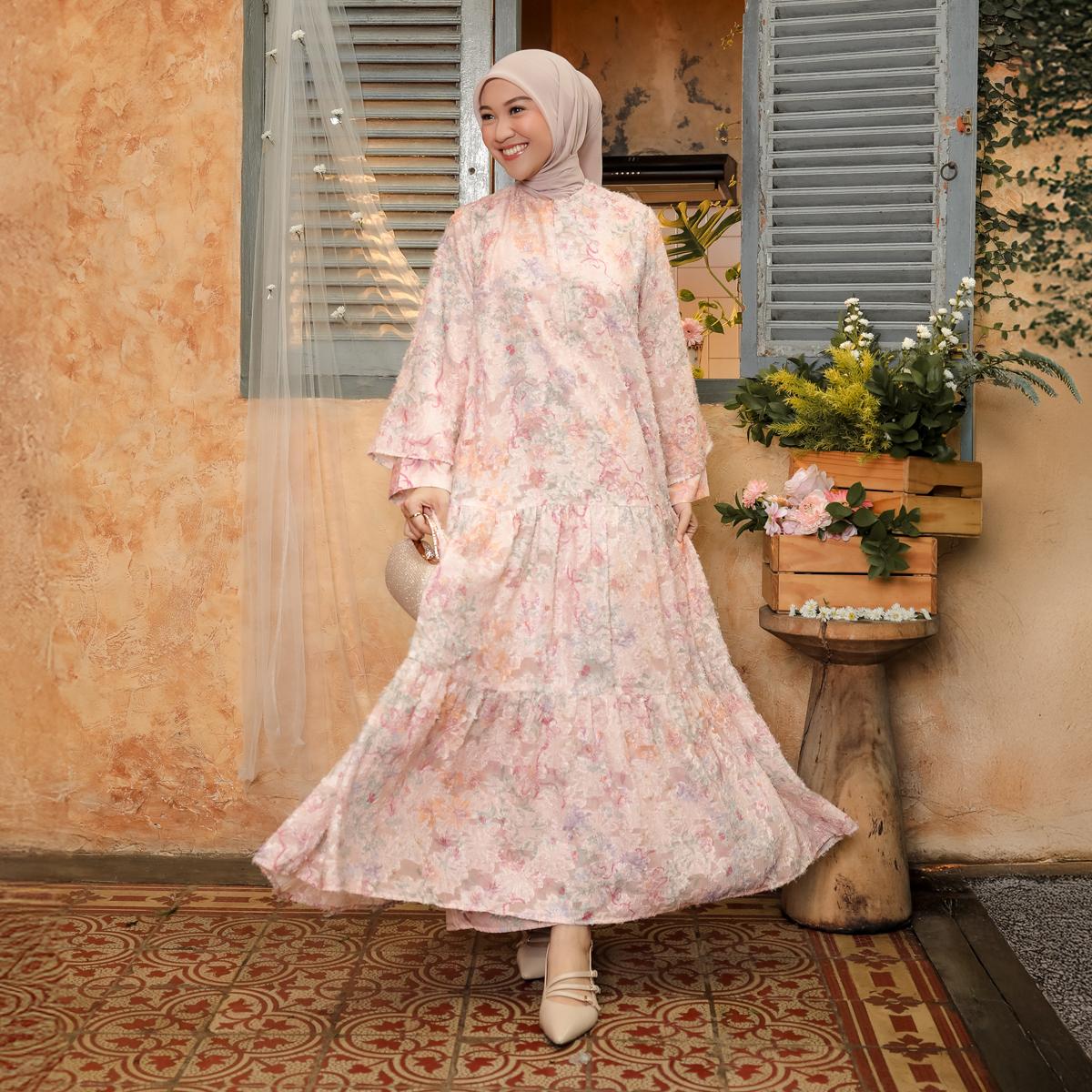 [Raya Collection] ZM Zaskia Mecca - Sarimbit Family Set 1 - Lilya Senja | Gamis Wanita | Kemeja Koko Pria Anak