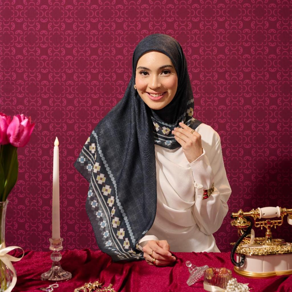 [INCLUDE PREMIUM HARD BOX] ZM Zaskia Mecca - Scarf Harmoni Series Alur | Hijab Premium Square Motif | Kerudung Segi Empat