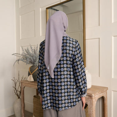 Blouse ini memiliki cutting A-line dengan desain bagian belakang yang sedikit lebih panjang, menciptakan siluet yang jatuh indah serta memberi kesan ramping dan elegan. Kombinasi motif yang manis dan elegan menambah karakter mewah namun tetap comfy, menjadikannya mudah dipadukan untuk berbagai suasana.