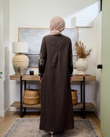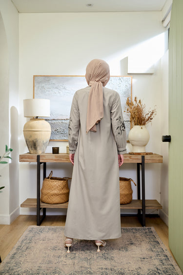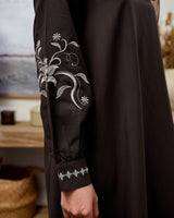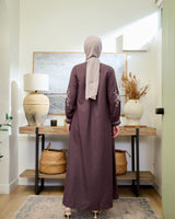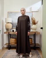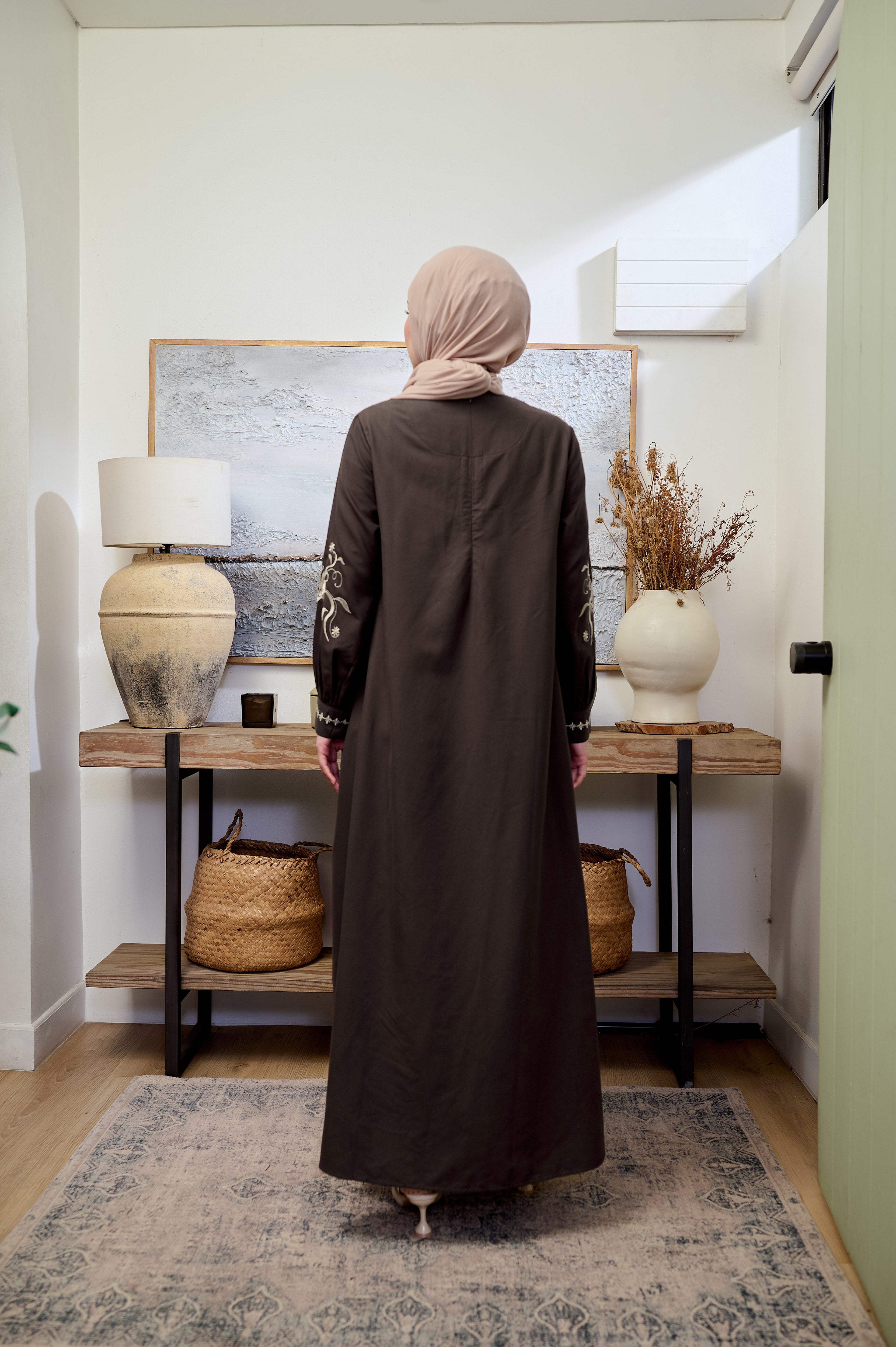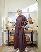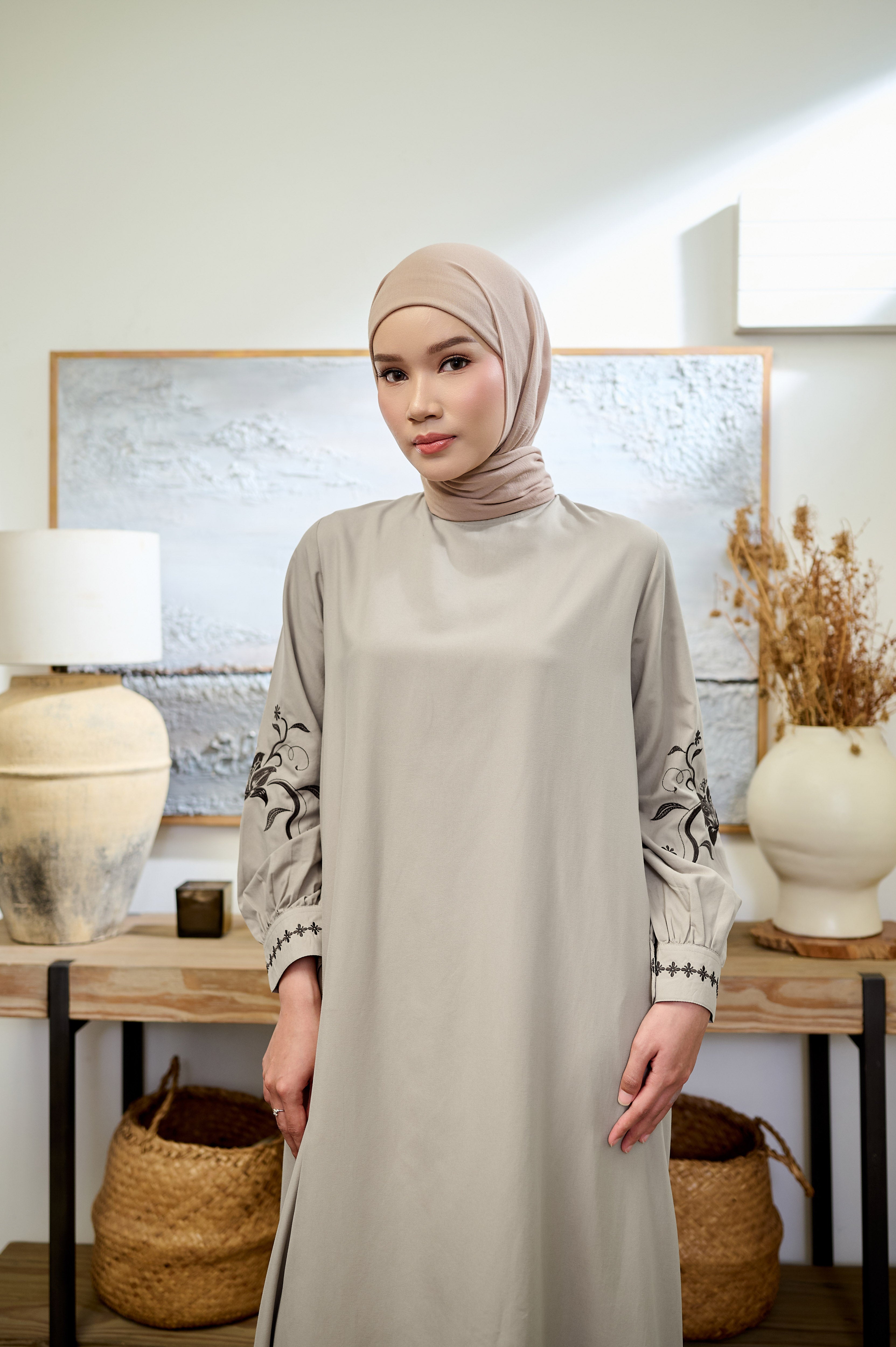 Detail bordir halus pada bagian lengan menambahkan sentuhan manis dan elegan, dipadukan dengan gaya lengan manset dan leher kerah bulat yang memberi kesan klasik dan feminin. Cocok dikenakan untuk berbagai acara formal maupun semi formal, dari pertemuan keluarga hingga acara spesial lainnya.