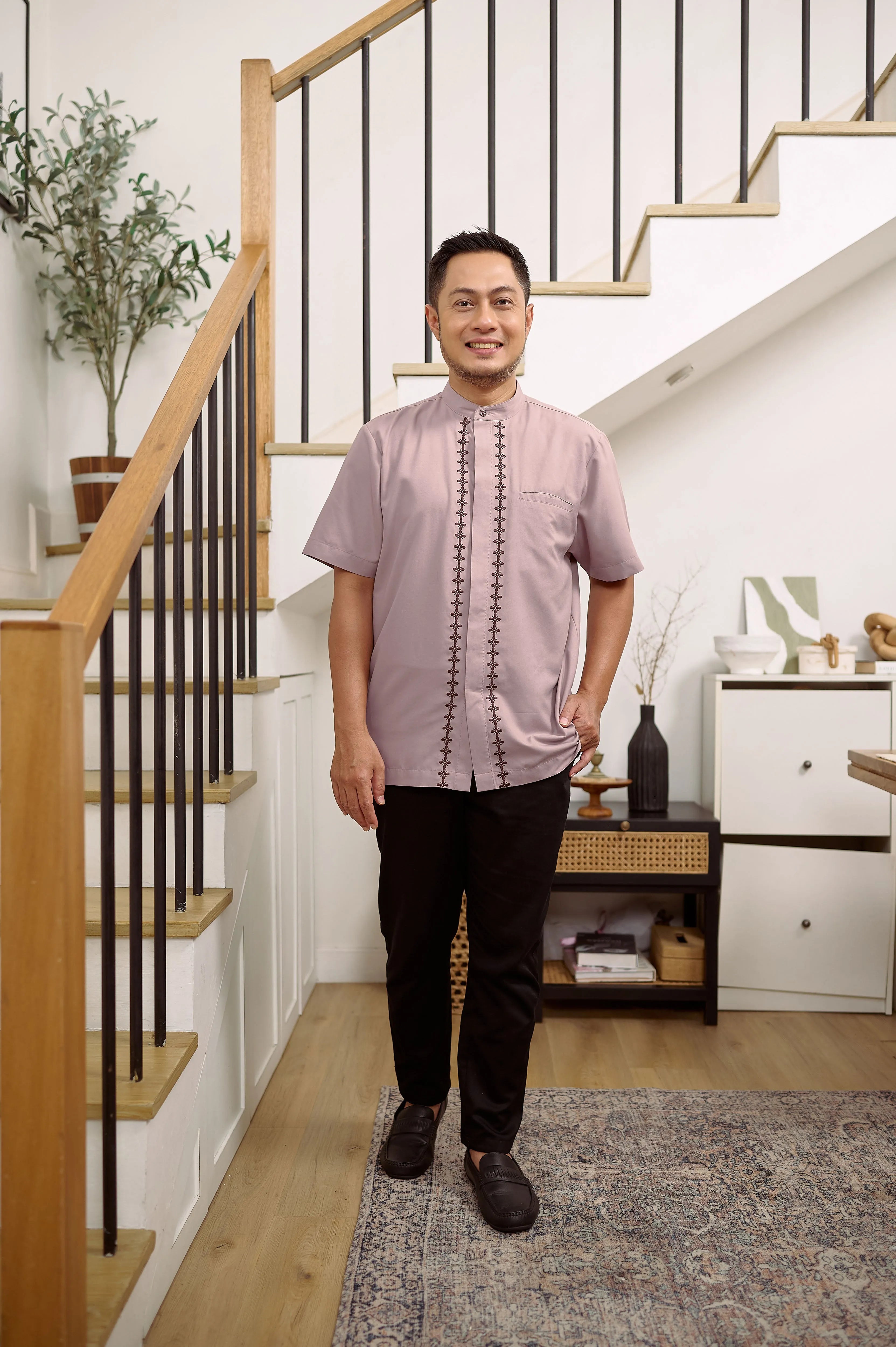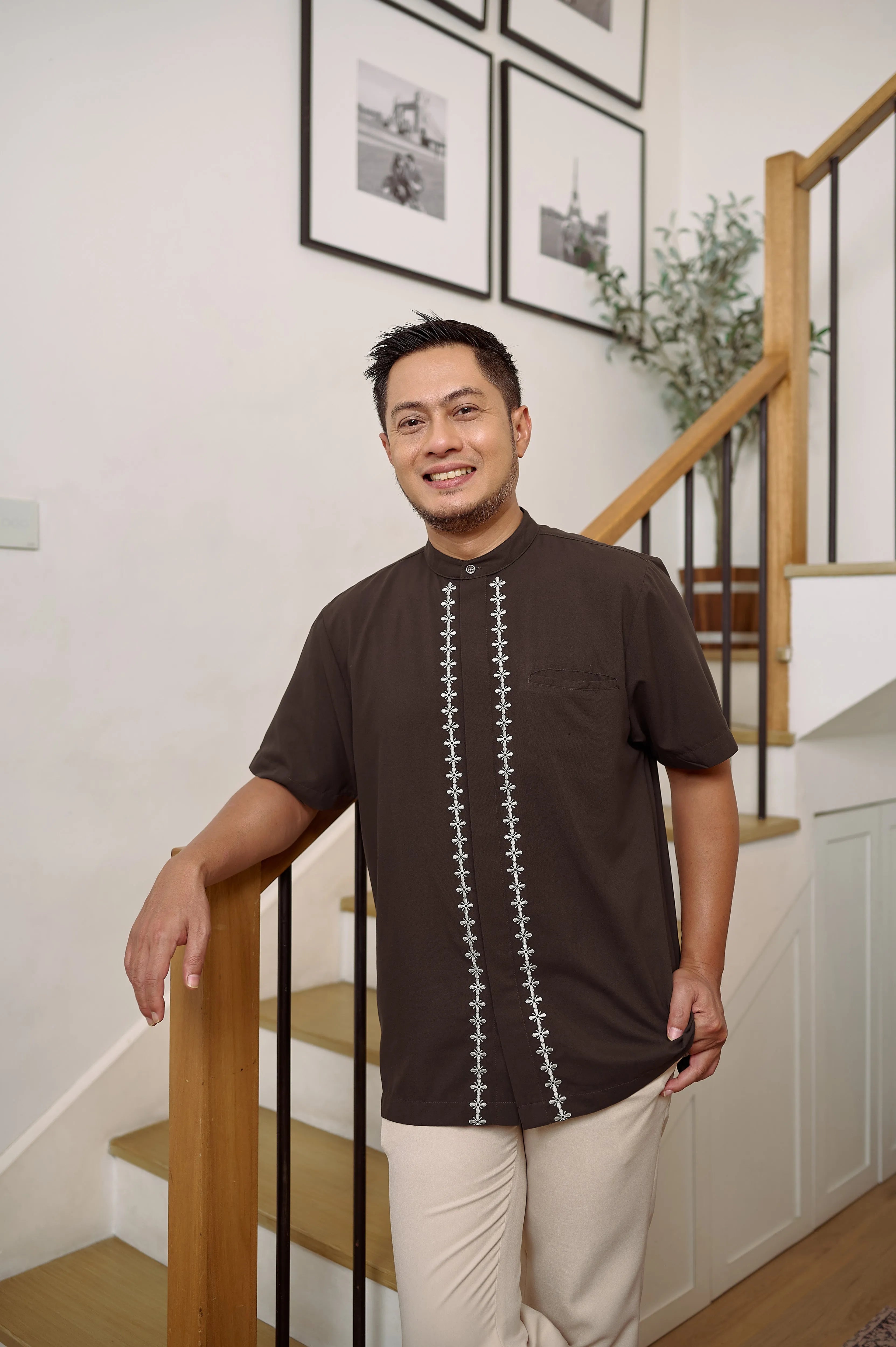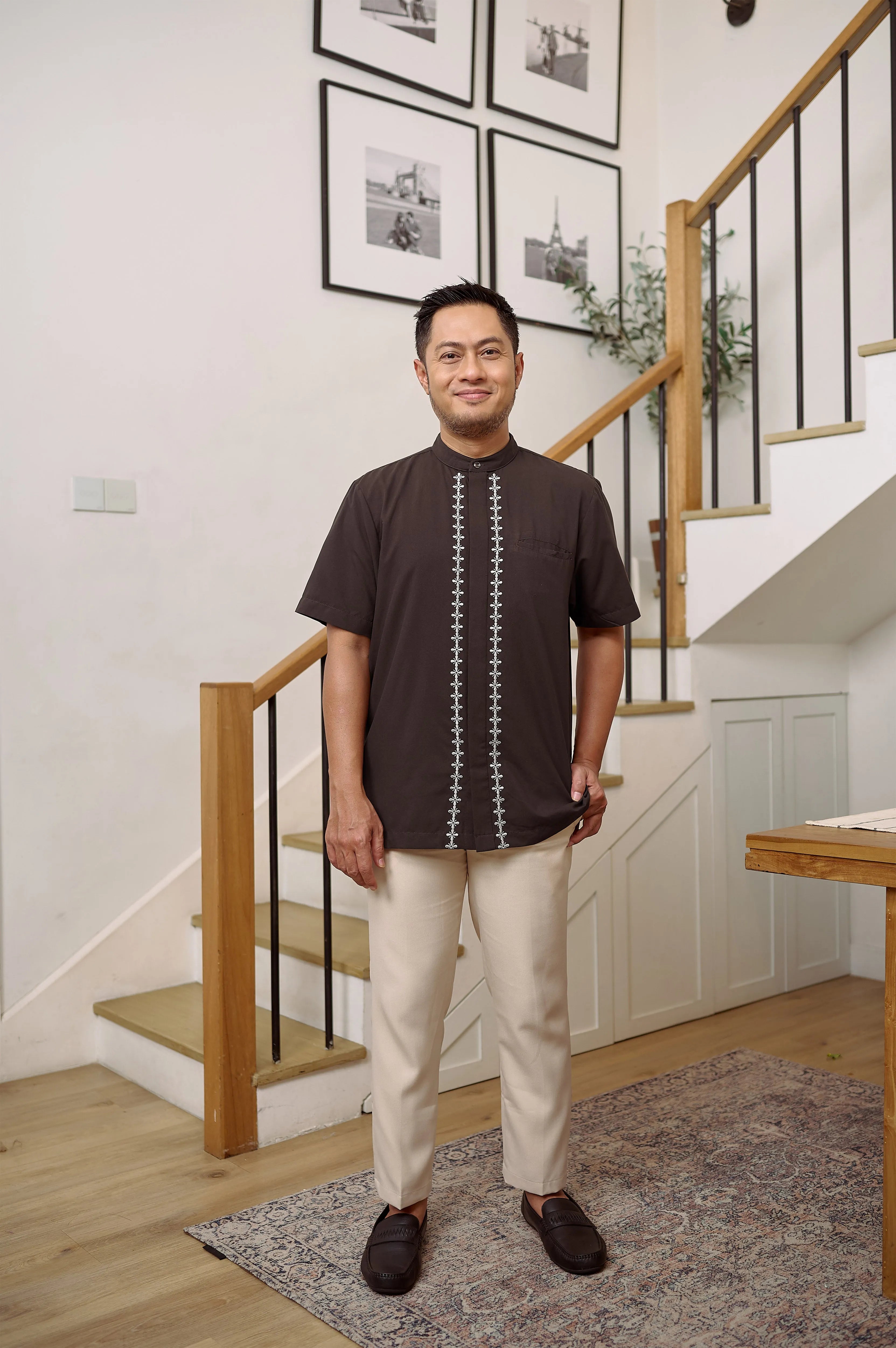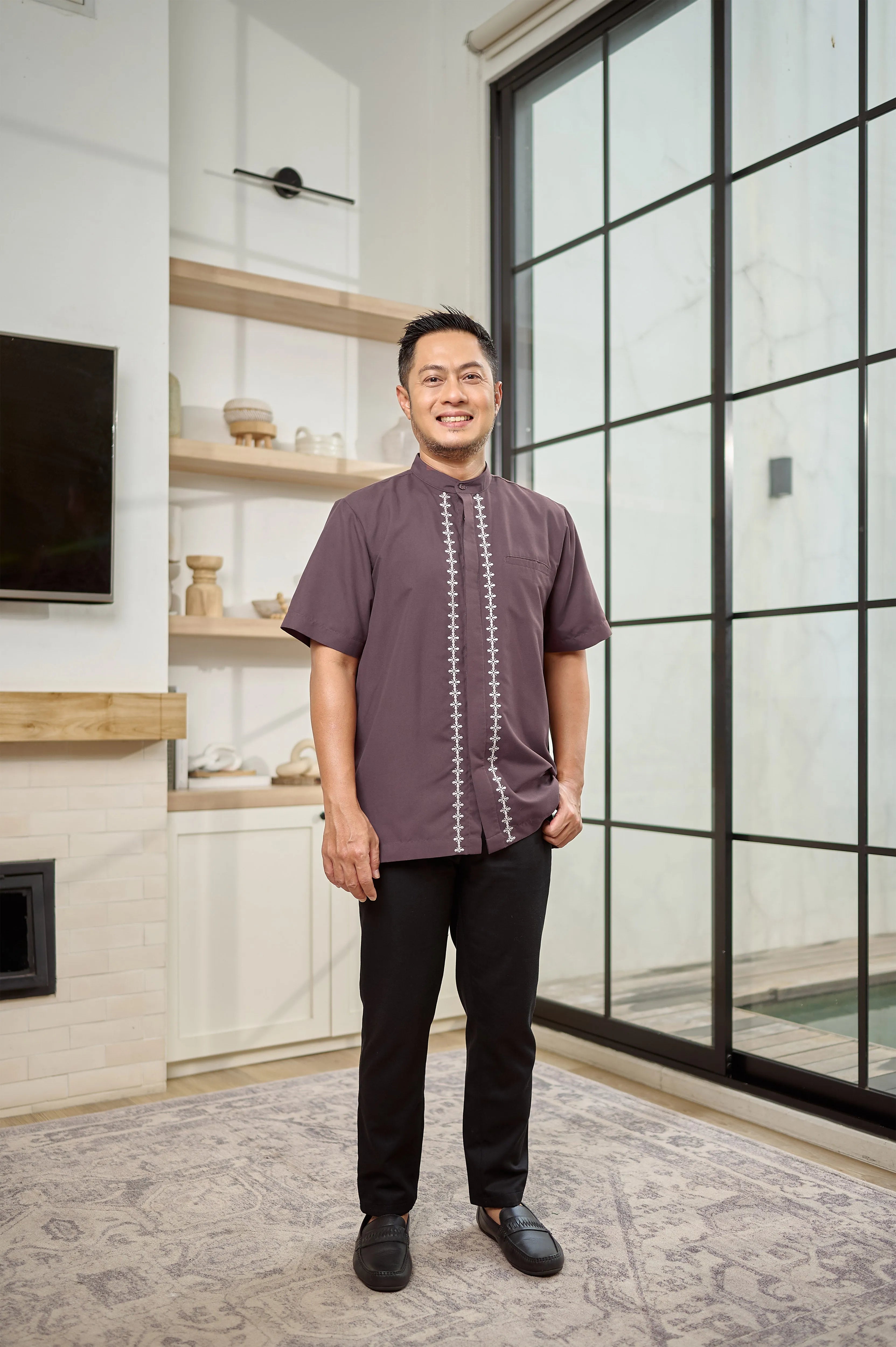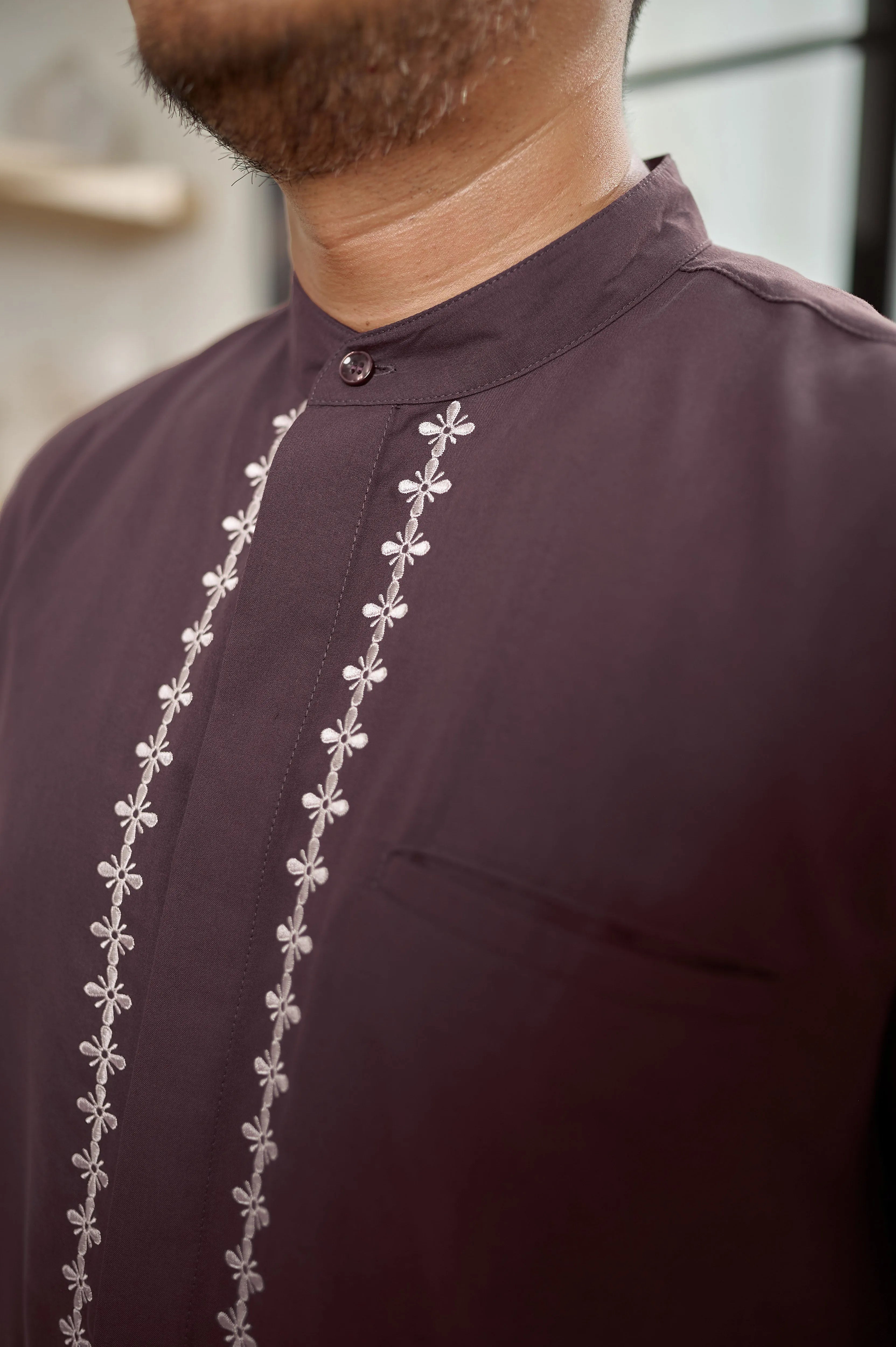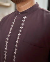 Keistimewaan utama kemeja ini terletak pada detail bordir mewah di bagian samping dan plaket kancing. Bordir rapi dan presisi ini menambah sentuhan eksklusif, menjadikan kemeja terlihat lebih berkelas dan berbeda dari kemeja basic pada umumnya. Desainnya yang clean dan modern membuatnya fleksibel untuk berbagai kesempatan — dari acara formal, semi-formal, hingga tampilan kasual yang tetap rapi.