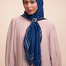 Scarf ini cocok untuk dipakai acara formal atau non-formal. Dengan kualitas bahan yang memiliki sirkulasi udara yang baik sehingga karakteristik kain terasa ringan, halus, tidak kaku, tidak terawang, tidak licin, tidak mudah kusut, dan bertekstur lembut ketika menyentuh kulit. Tidak bervolume saat digunakan sehingga rapi dan nyaman saat digunakan untuk menemani aktivitas sehari-hari.