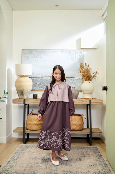 Dress anak ini dirancang dengan detail yang cantik, modern, dan tetap nyaman digunakan. Mengusung desain rompi two tone pada bagian depan, dress ini memberikan tampilan ceria dan stylish. Bagian pinggang dilengkapi detail ruffle yang menambah kesan feminin dan playful, membuat anak terlihat lebih manis dan aktif.