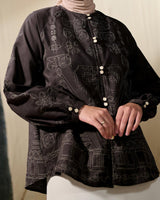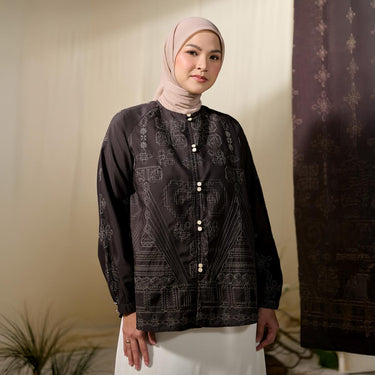 Blouse ini dirancang untuk menghadirkan keanggunan klasik dengan sentuhan etnik Nusantara yang kuat. Mengusung model leher bulat yang timeless dan lengan manset yang rapi, blouse ini menciptakan siluet feminin yang elegan sekaligus nyaman dikenakan.